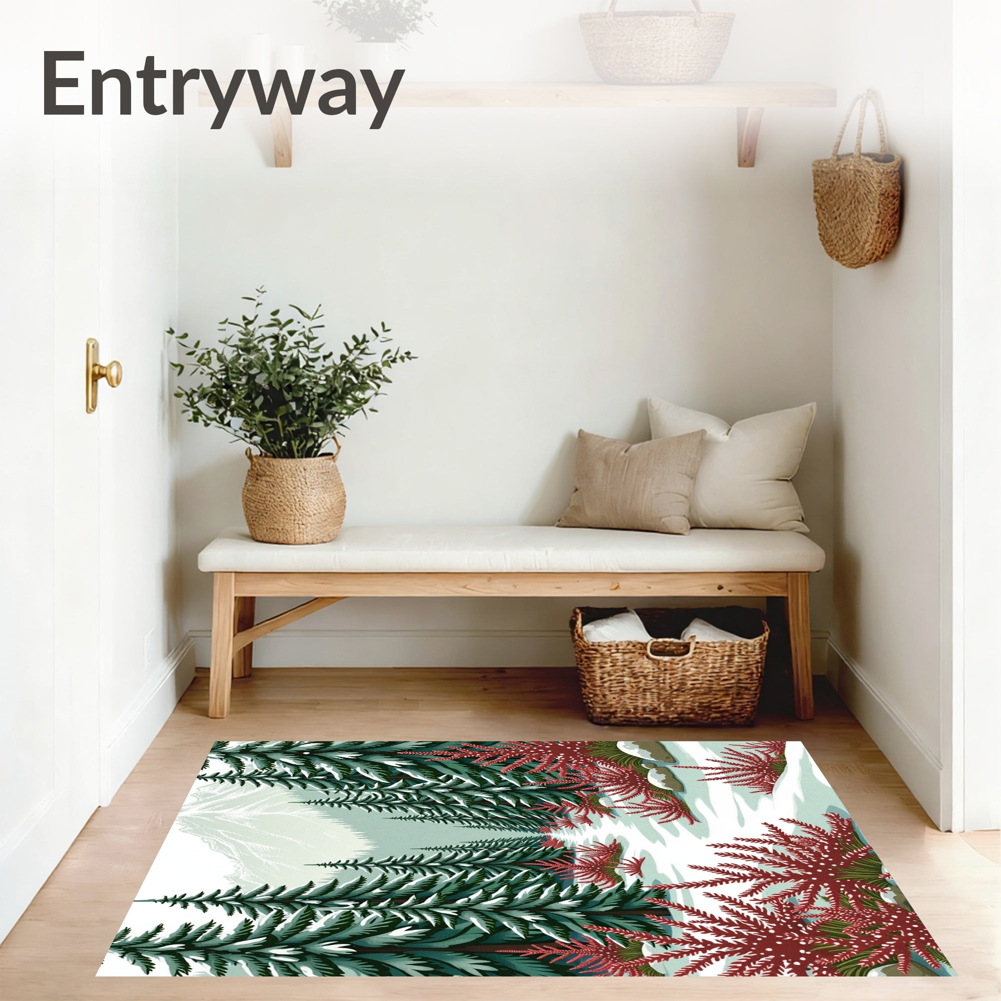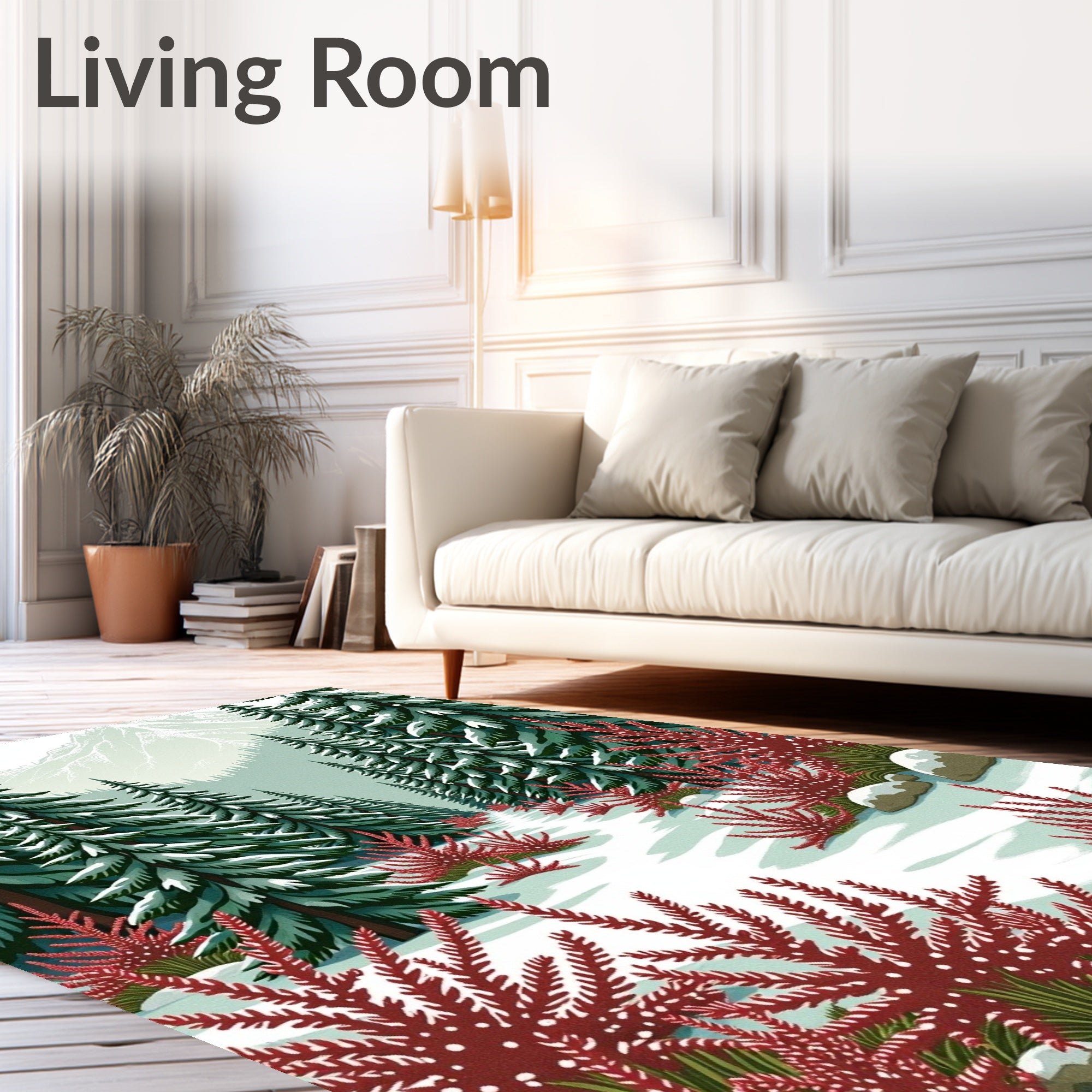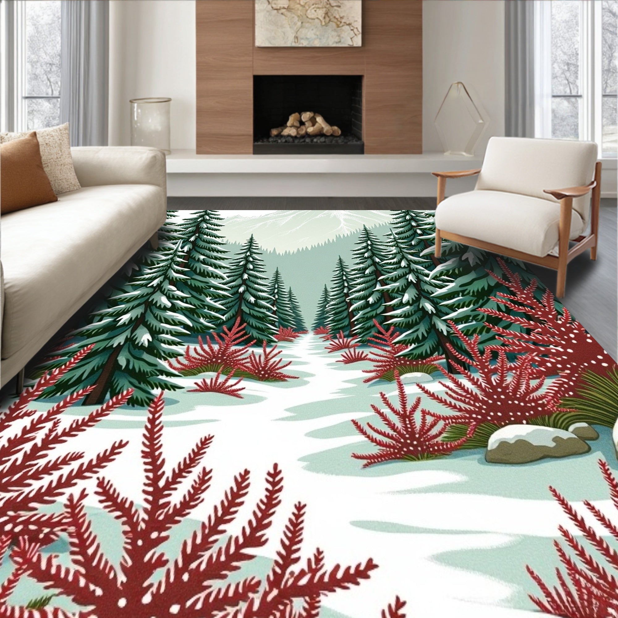 Ultra Soft Area Rug, Non Slip, Stain Resistant, Washable Area Rugs for Living Room, Bedroom, Woodland Winter Scene Decorative Embellishment(Green) Overview: