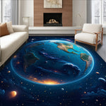 Flatwoven High Traffic Area Rug, world map round, Non Slip, Stain Resistant, Washable Area Rugs for Living Room, Bedroom (Blue) Overview: