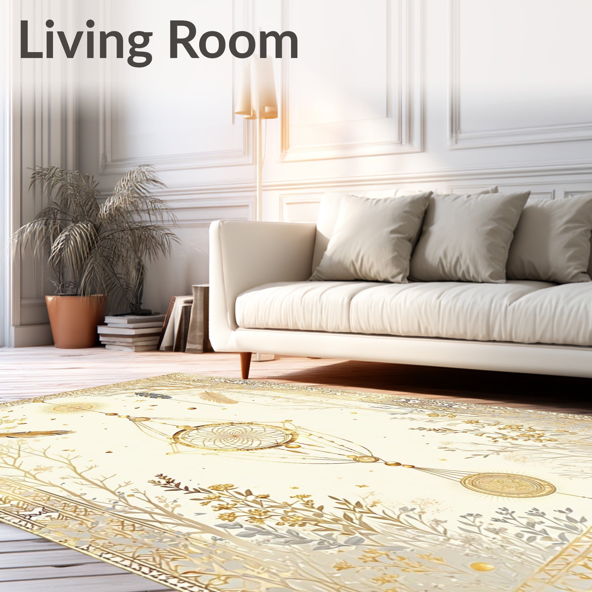 Flatwoven High Traffic Area Rug, Oasis Bohemian Dreamcatcher, Non Slip, Stain Resistant, Washable Area Rugs for Living Room, Bedroom (Gold) Overview: