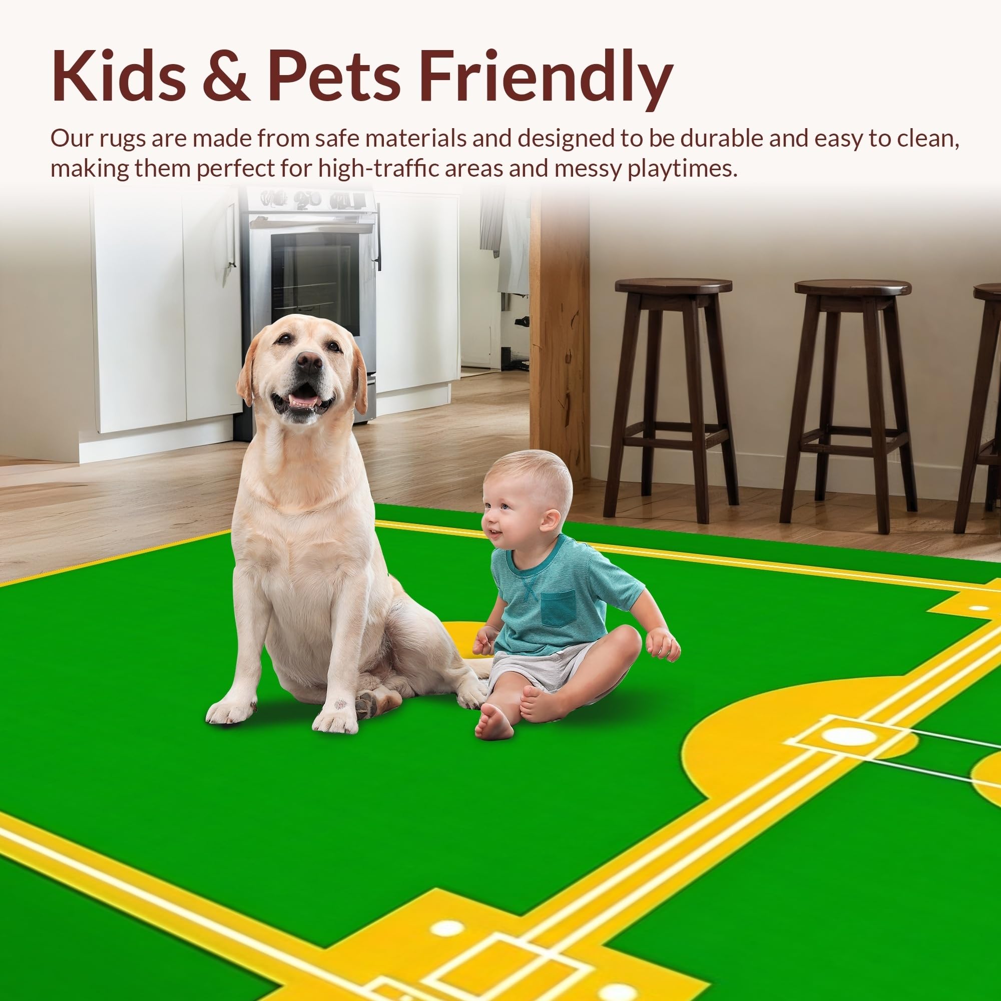 Ultra Soft Area Rug, Non Slip, Stain Resistant, Washable Area Rugs for Living Room, Bedroom, Youthful Playful Iconic Field Pattern(Green) Overview: