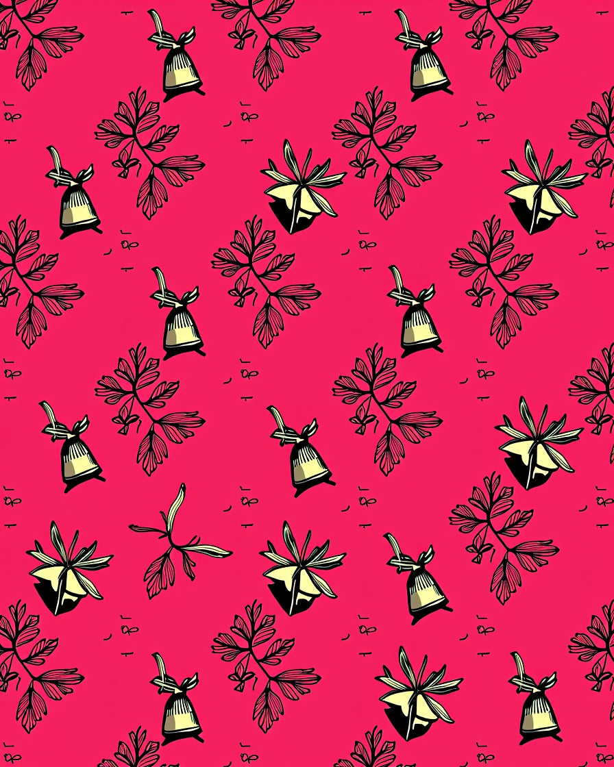 Yuletide Accent with Traditional Bell and Holly Leaf Motifs(Pink)