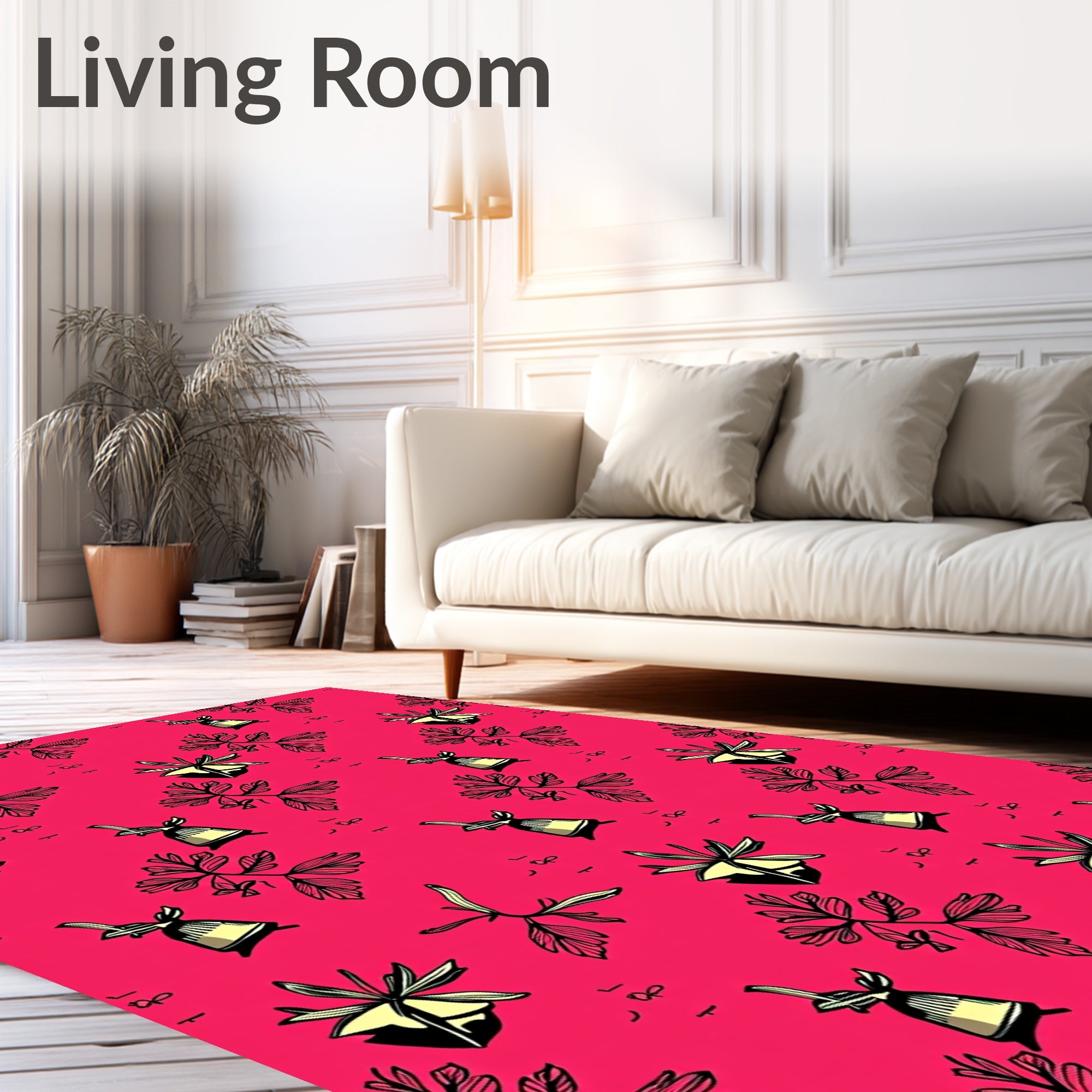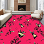 Ultra Soft Area Rug, Non Slip, Stain Resistant, Washable Area Rugs for Living Room, Bedroom, Yuletide Accent with Traditional Bell and Holly Leaf Motifs(Pink) Overview: