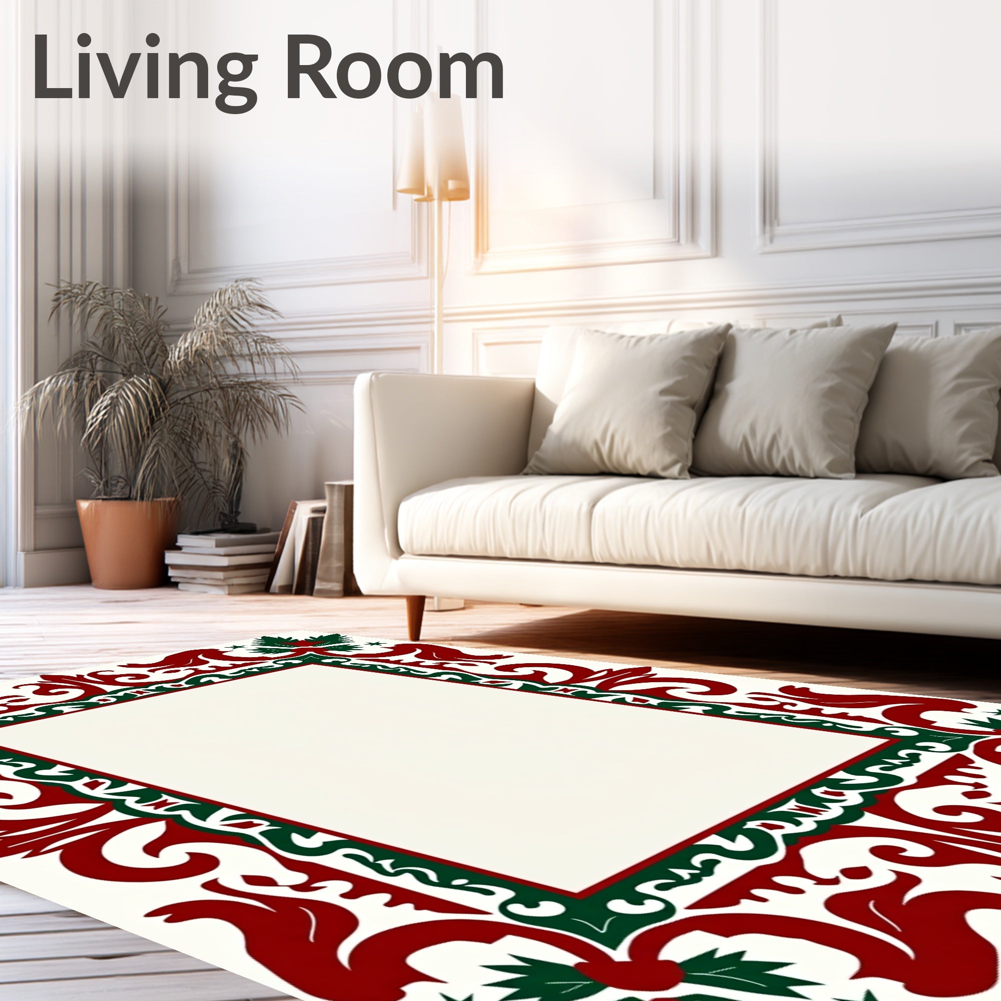 Ultra Soft Area Rug, Non Slip, Stain Resistant, Washable Area Rugs for Living Room, Bedroom, Yuletide Botanical Swirl Decorative Elegant Stylish(Red) Overview: