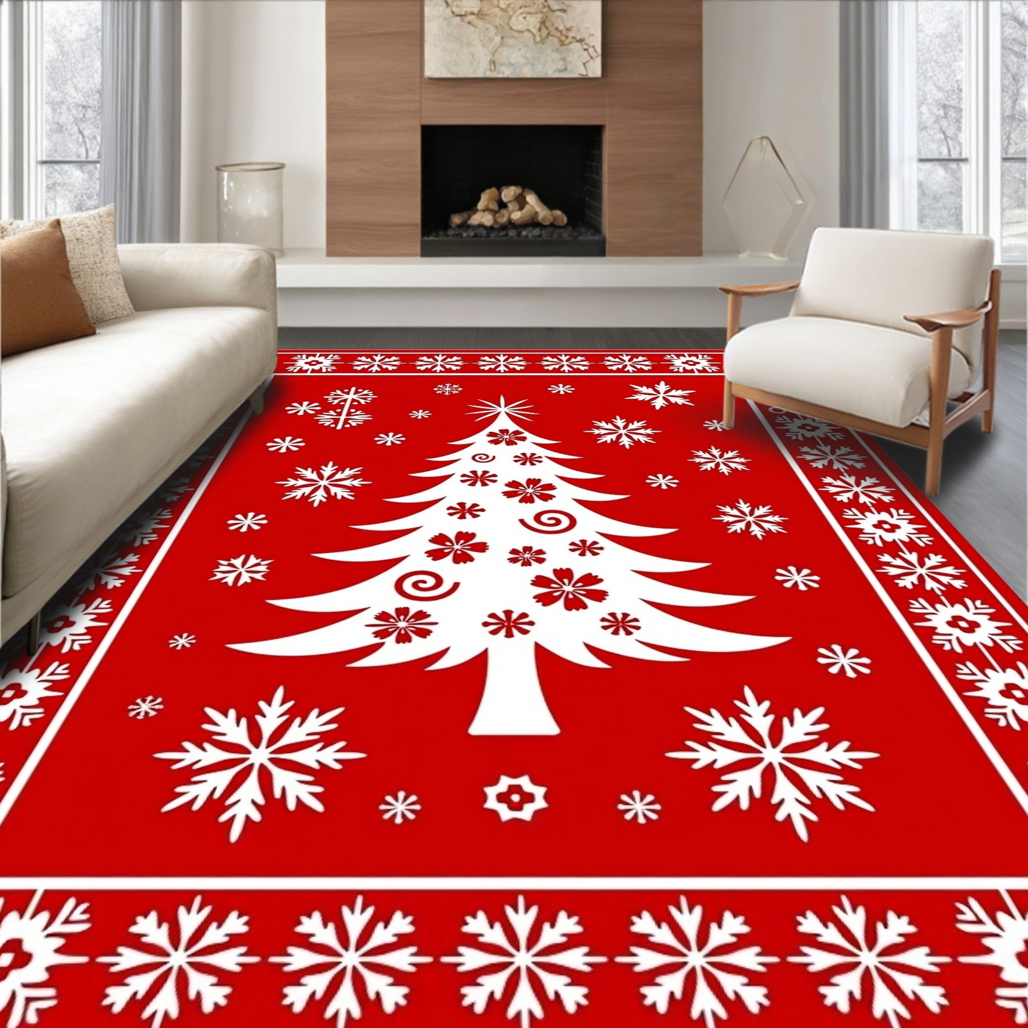 Yuletide Celebration Decorative Floor Covering(Red)