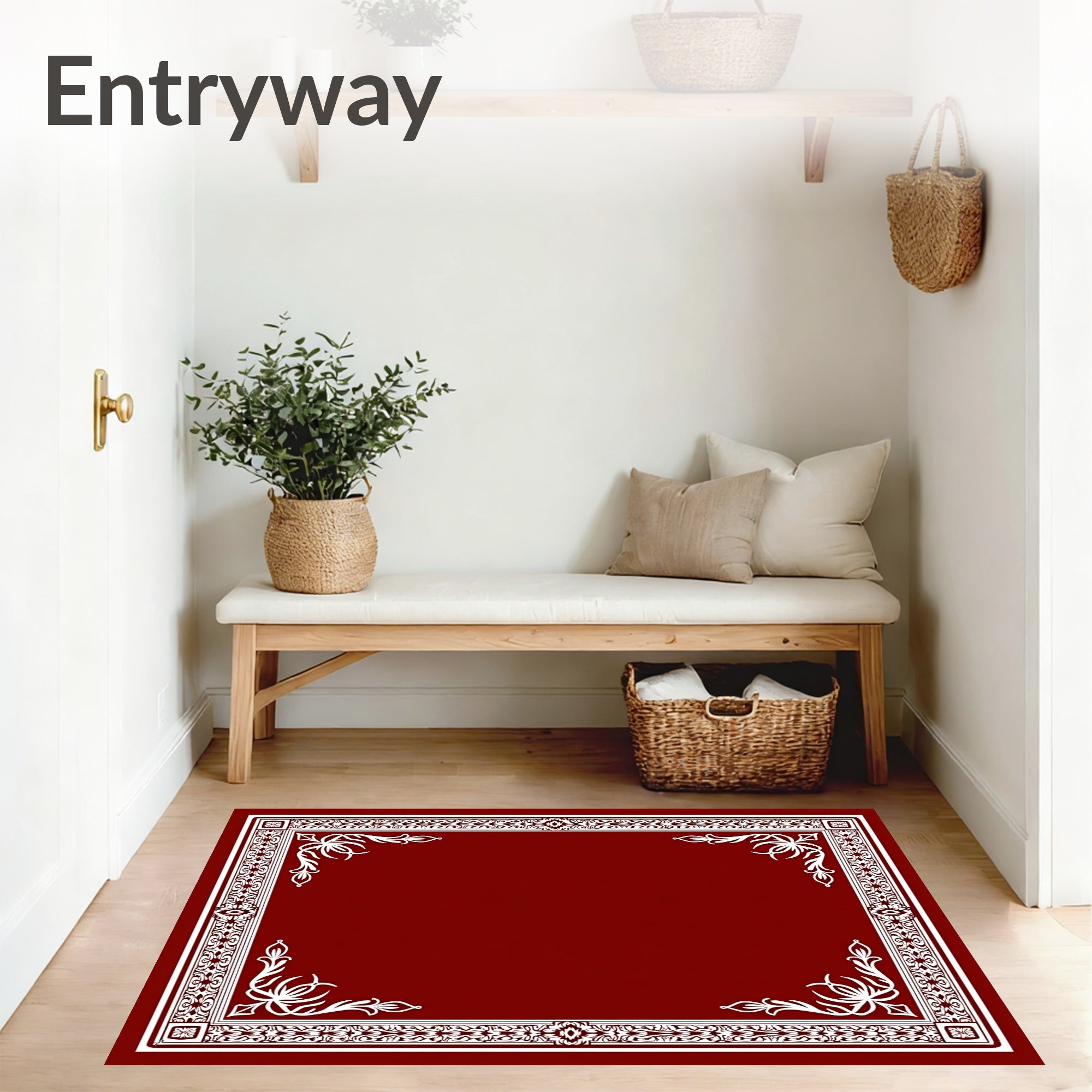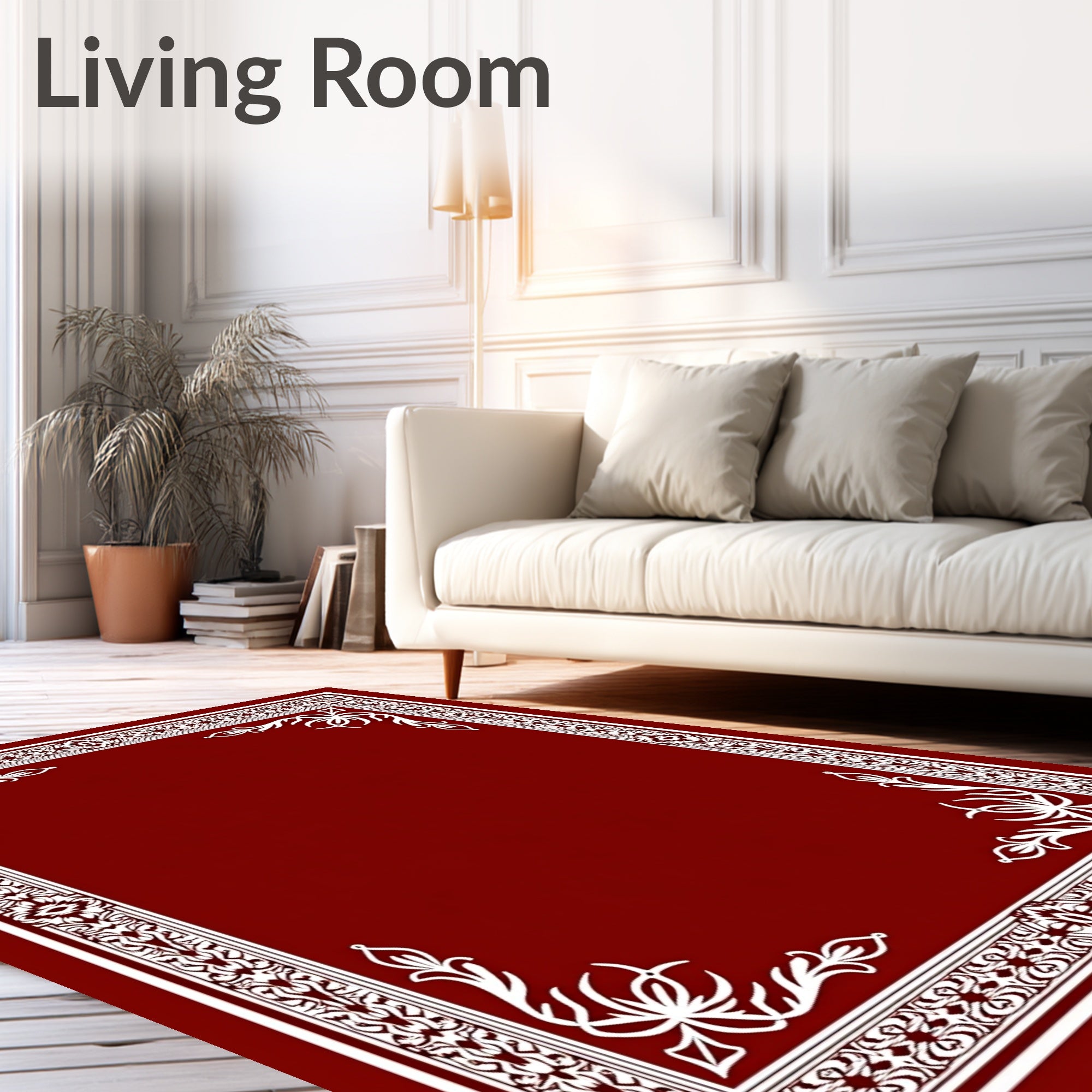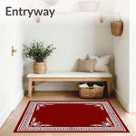 Ultra Soft Area Rug, Non Slip, Stain Resistant, Washable Area Rugs for Living Room, Bedroom, Yuletide Crystal Interlocking Filigree with Gilded Accents(Red) Overview:
