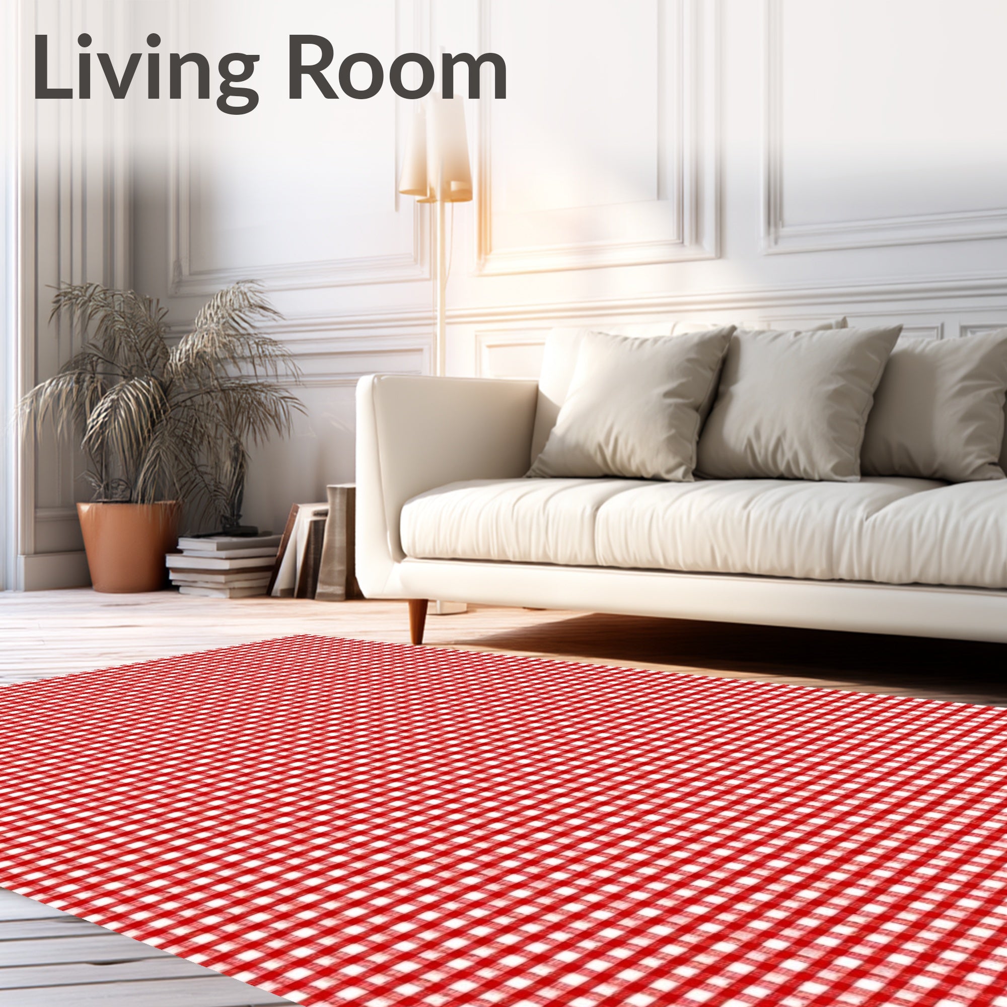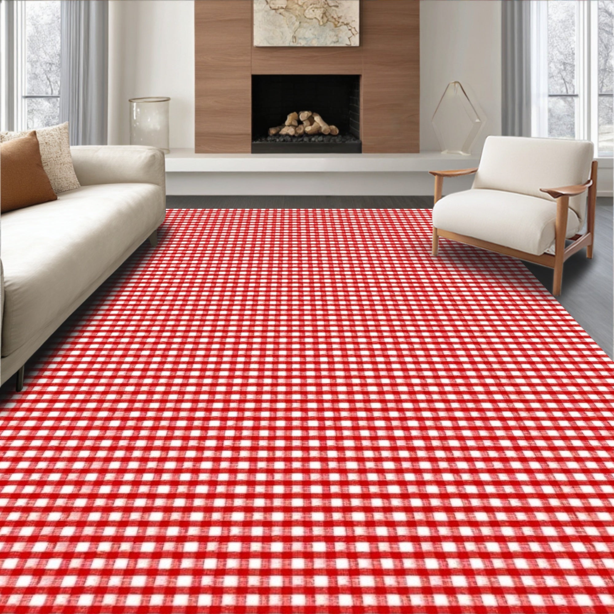 Ultra Soft Area Rug, Non Slip, Stain Resistant, Washable Area Rugs for Living Room, Bedroom, Yuletide Gingham Heritage(Red) Overview: