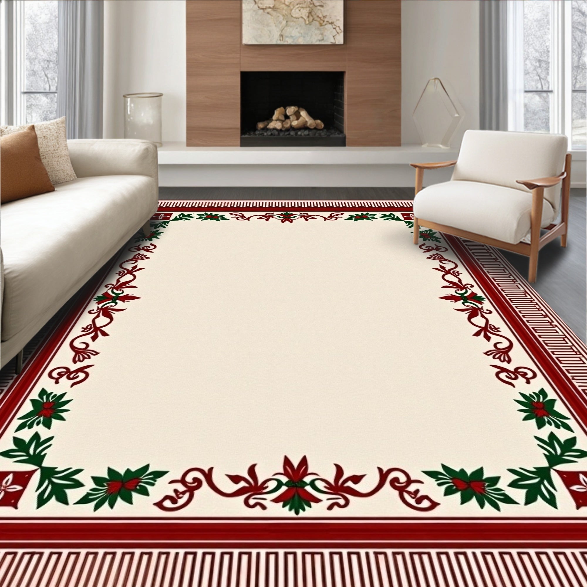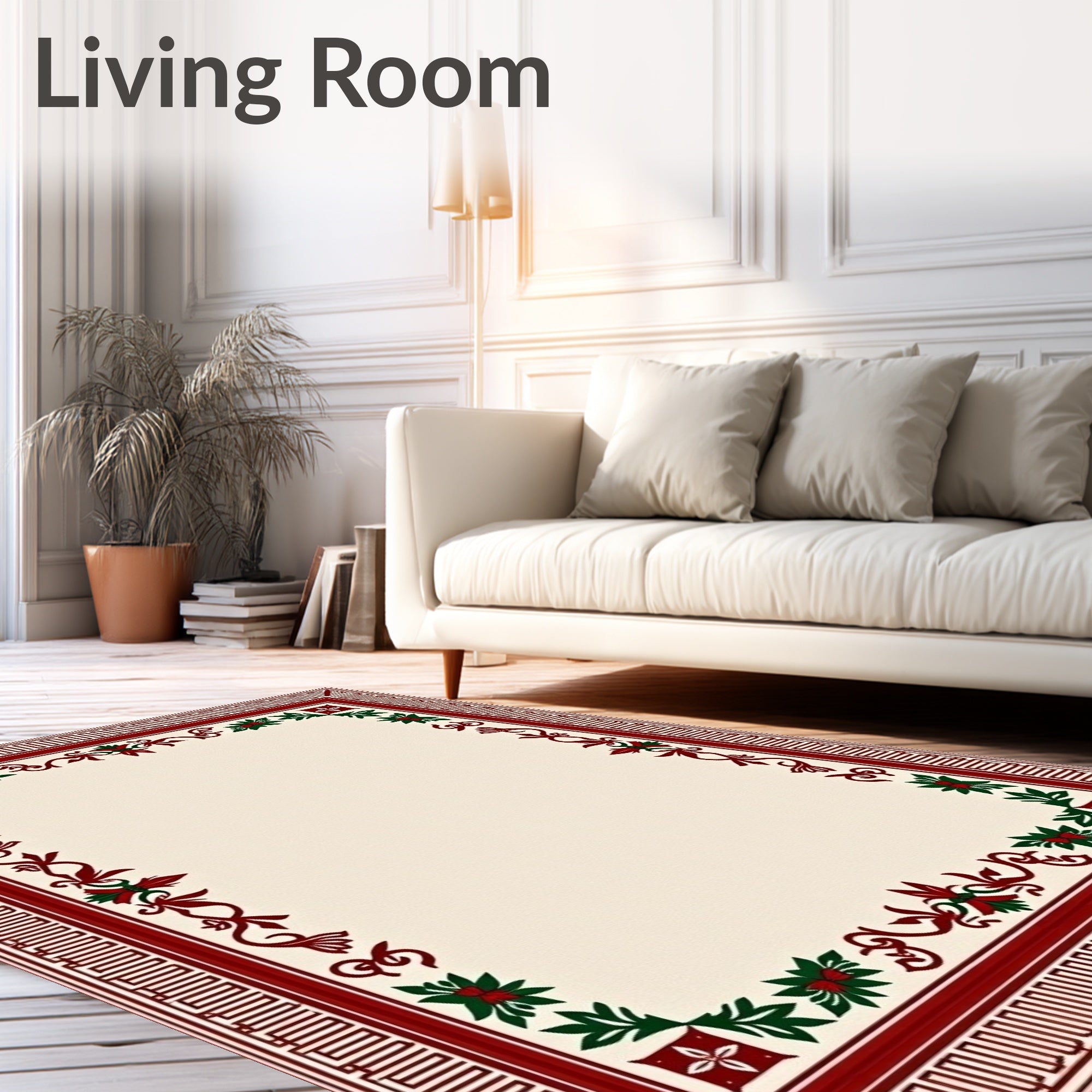 Ultra Soft Area Rug, Non Slip, Stain Resistant, Washable Area Rugs for Living Room, Bedroom, Yuletide Mosaic Celebration(Beige) Overview: