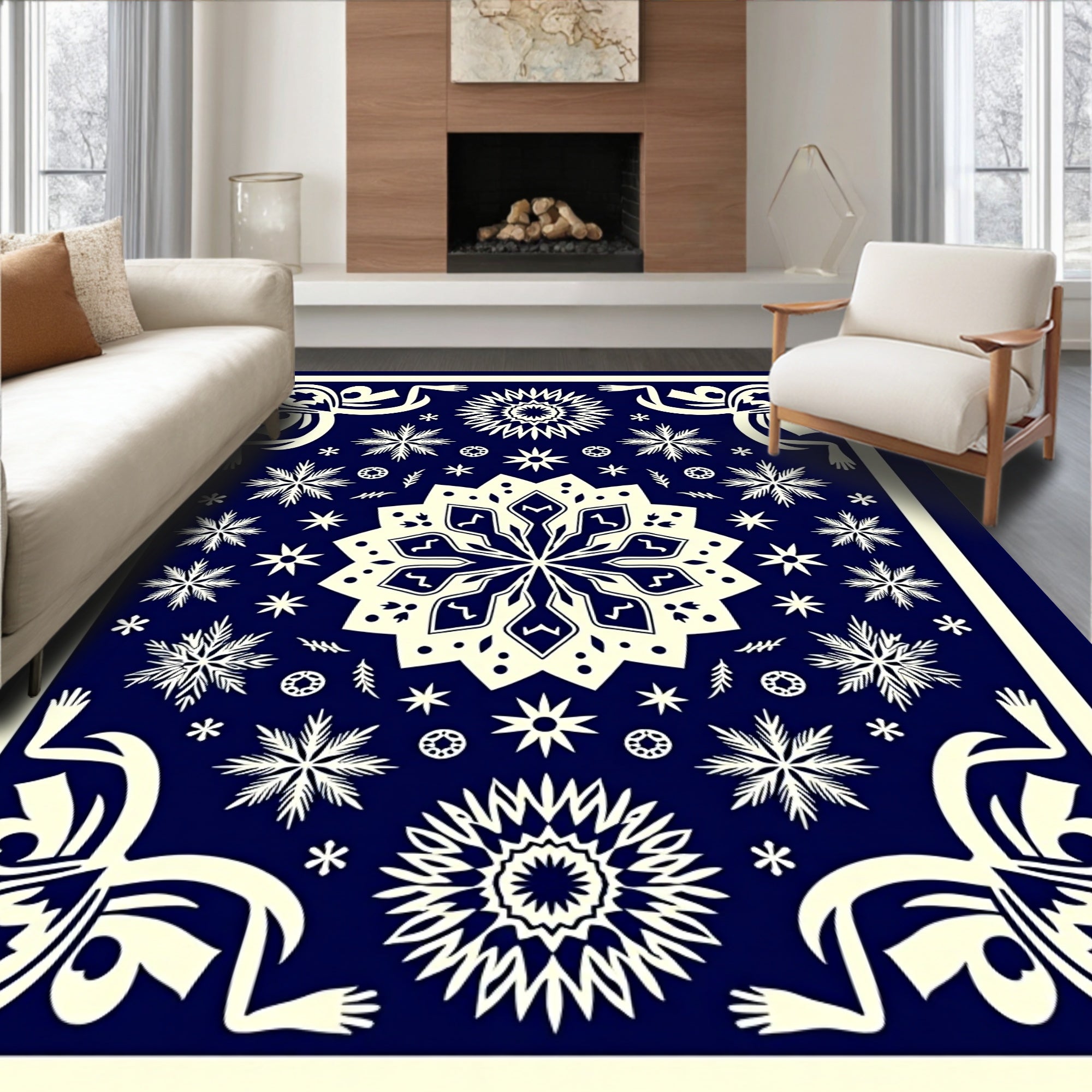 Ultra Soft Area Rug, Non Slip, Stain Resistant, Washable Area Rugs for Living Room, Bedroom, Yuletide Slip Resistant Decorative Floor(Blue) Overview: