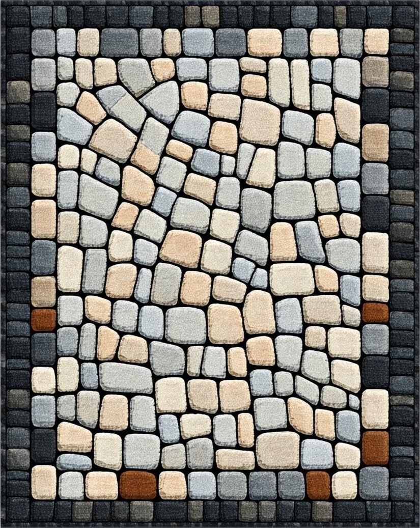 Zen Stone Mosaic Area with Cobblestone Inspired Boho Geometric Motifs(Beige)